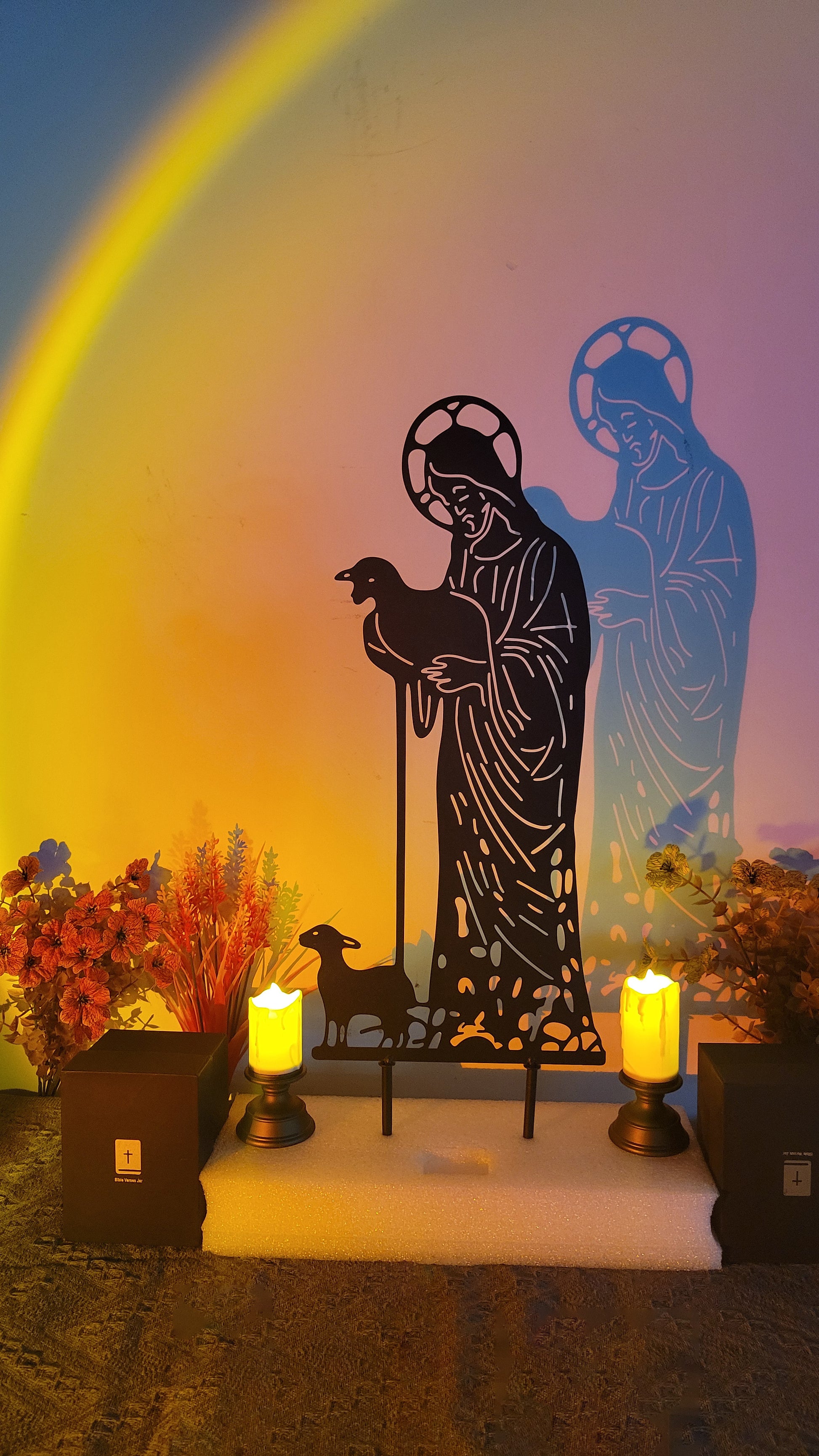 Made from high-quality metal with a rustic finish, this sign combines durability with timeless charm. The design captures the shepherd guiding his flock, a classic symbol of care, love, and faith.