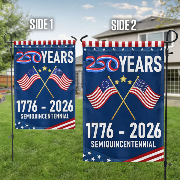 - Bold anniversary messaging: Clear "250 YEARS" and "1776-2026 SEMIQUINCENTENNIAL" text that tells the whole story.