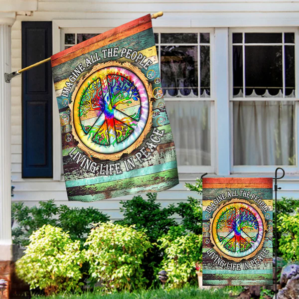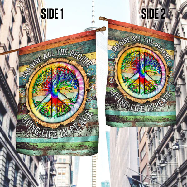 Imagine All The People Living Life In Peace Flag - Hippie FlagĀ