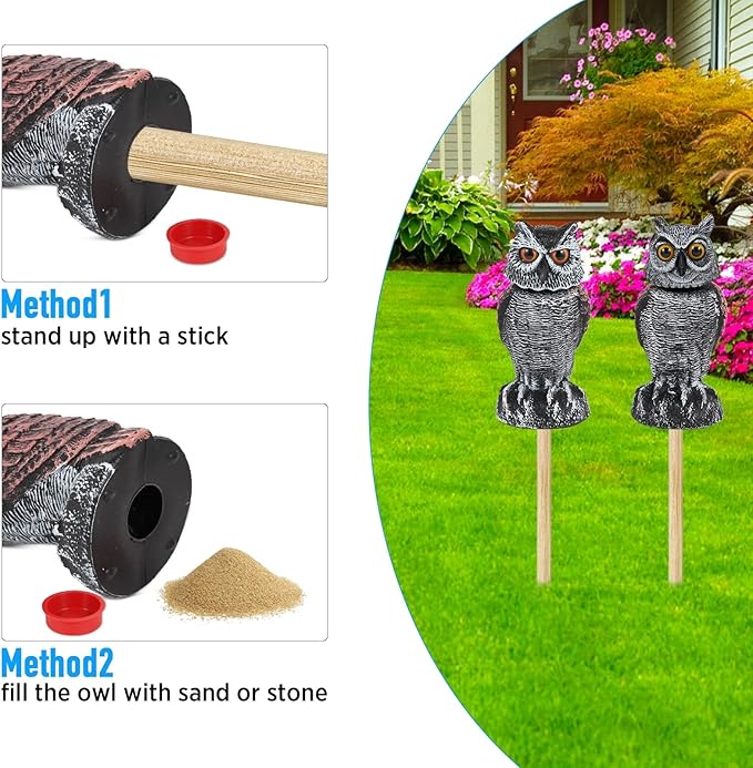 No batteries needed! The owl’s head spins with the wind to mimic real movement. Pro tip: Move it around every few days to keep critters on their toes.