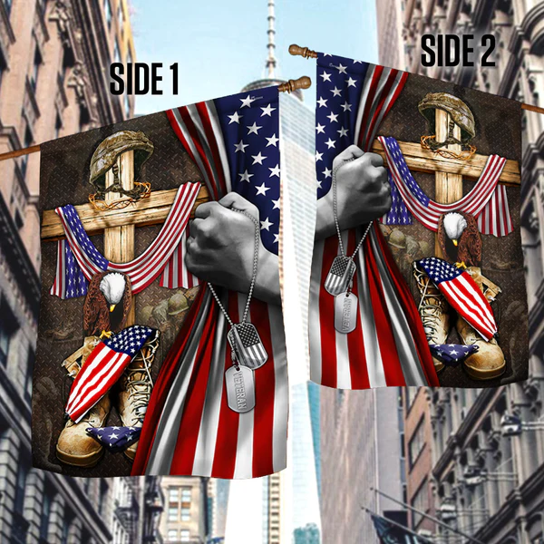 U.S. Veteran. Christian Cross American Patriot Memorial Flag TPT146F